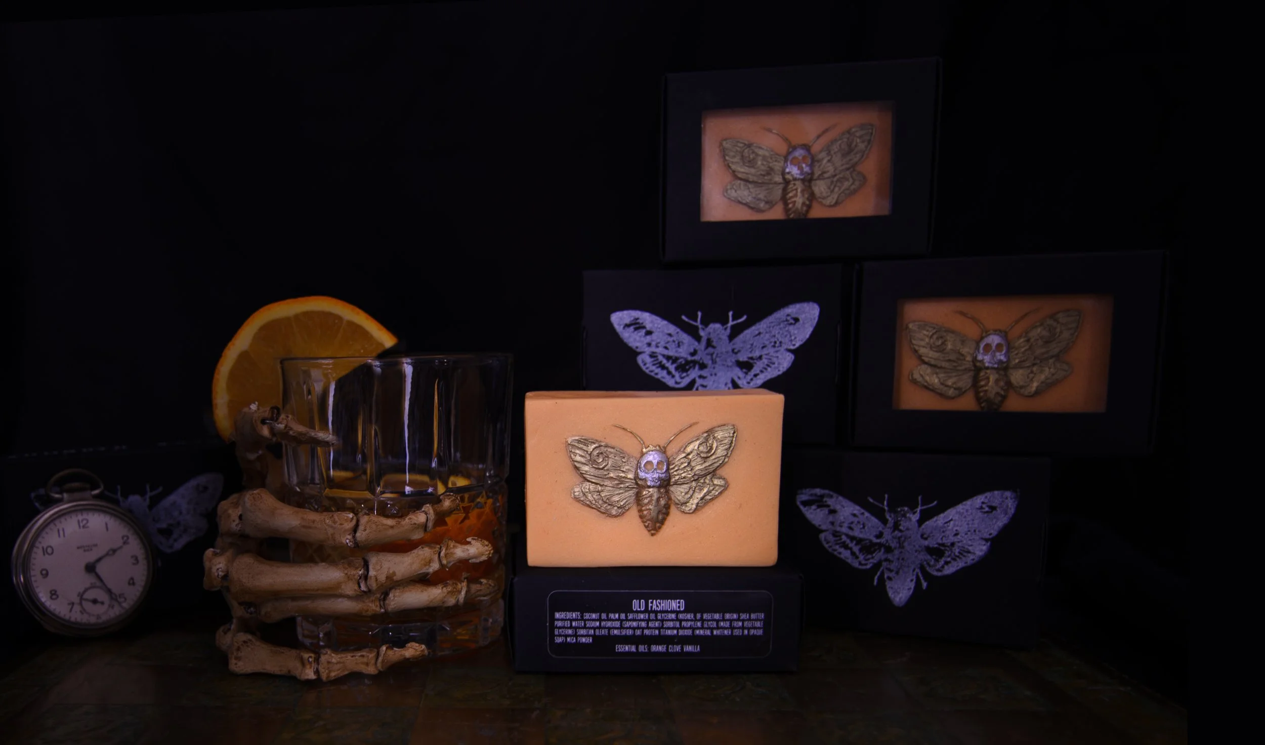 Coconut Oil Palm Oil Safflower Oil Glycerine (kosher, of vegetable origin) Shea Butter Purified Water Sodium Hydroxide (saponifying agent) Sorbitol Propylene Glycol (made from vegetable glycerine) Sorbitan Oleate (emulsifier) Oat Protein Titanium Dioxide (mineral whitener used in opaque soap), Mica Powder (non-toxic), Essential Oils: Orange, Clove, Vanilla.